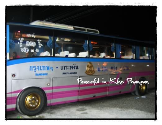 We took a VIP bus 24 seat at Southern bus station at 20.00 pm. The ticket was included ferry boat ticket already like around 800 baht take 12 hours road. Arrived Suratthani pier about 08.00 am. and take ferry boat 3 hours to the Phangan island.